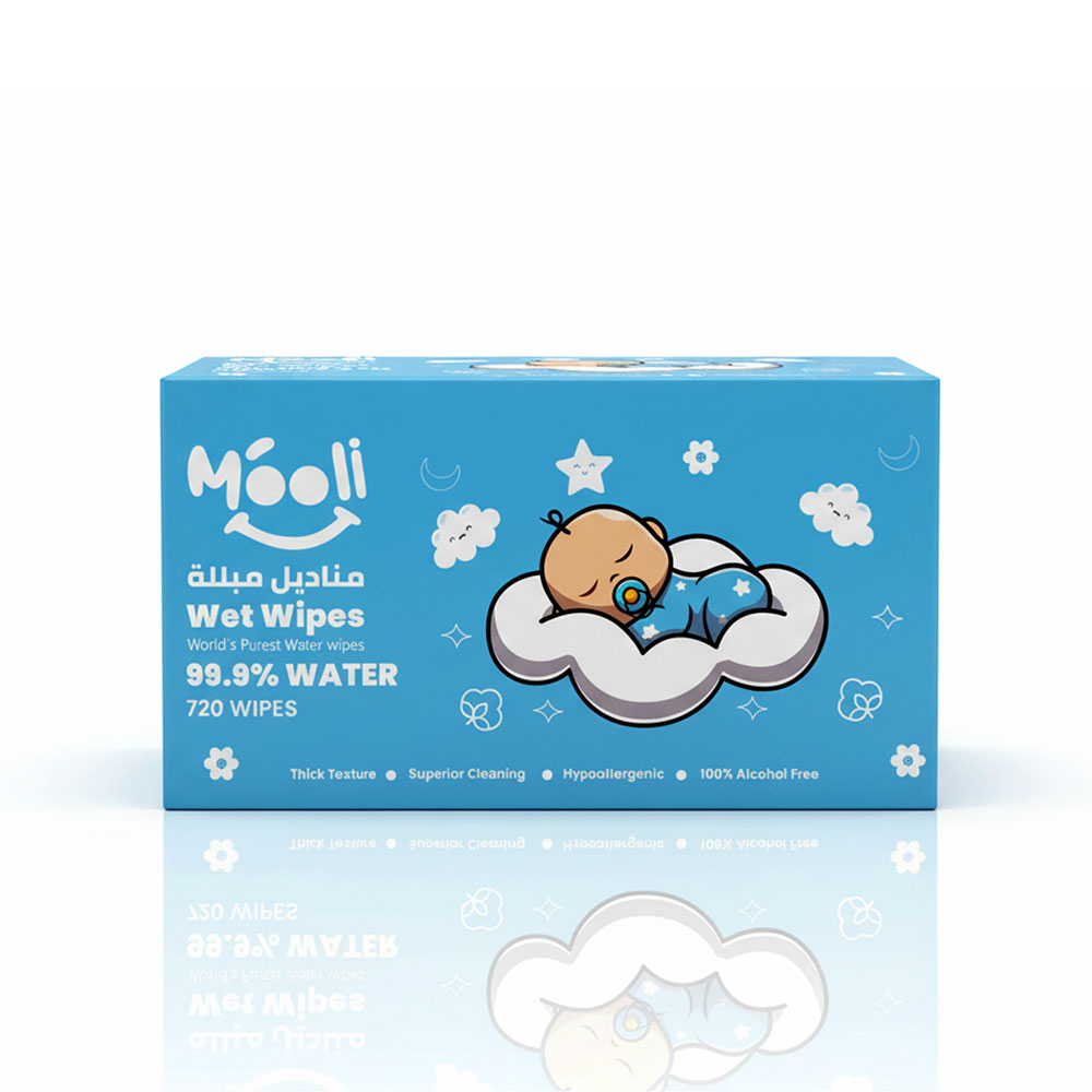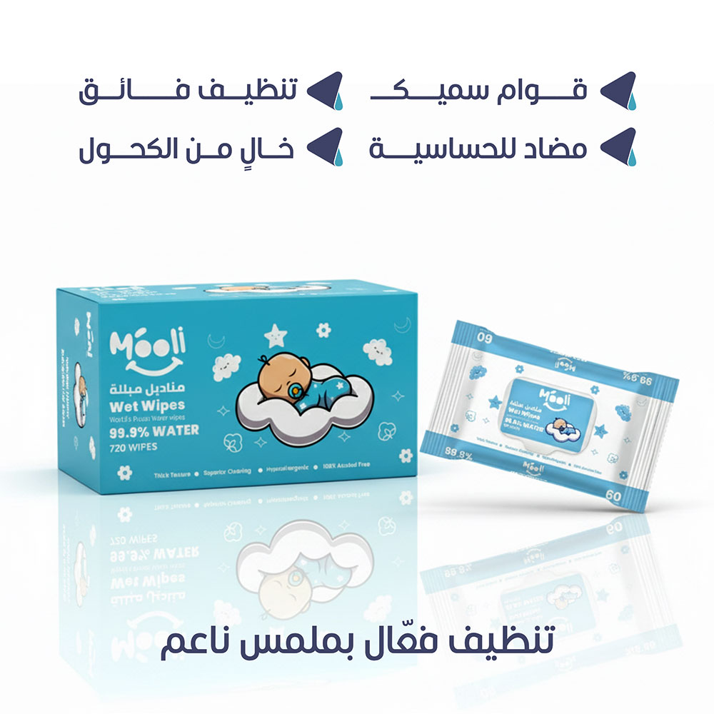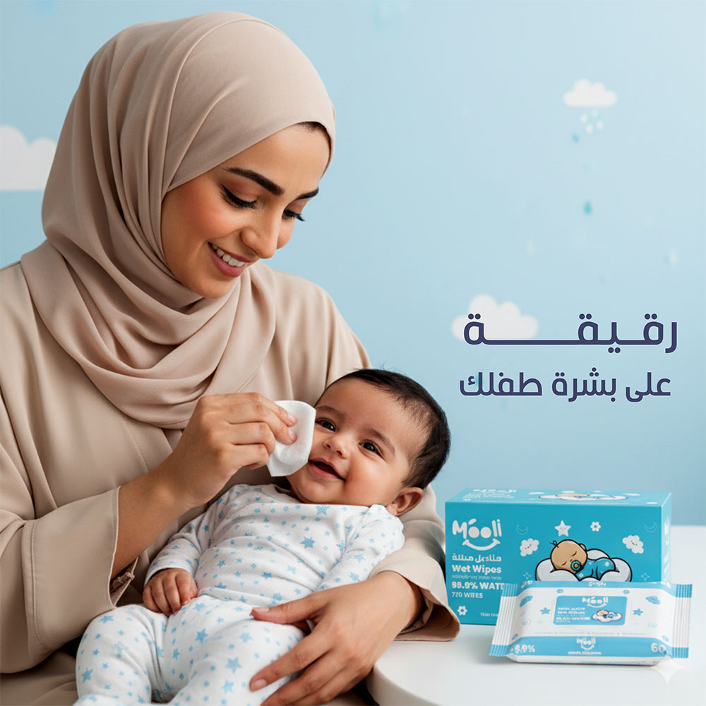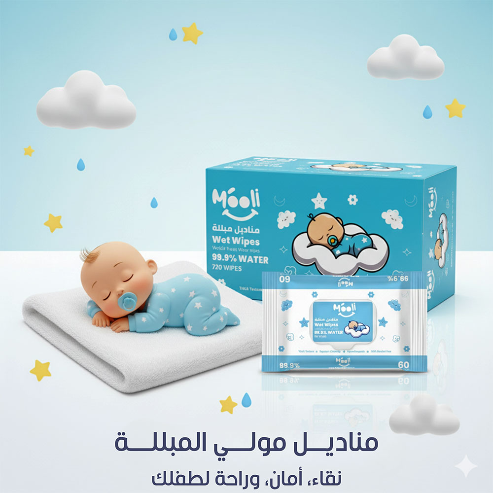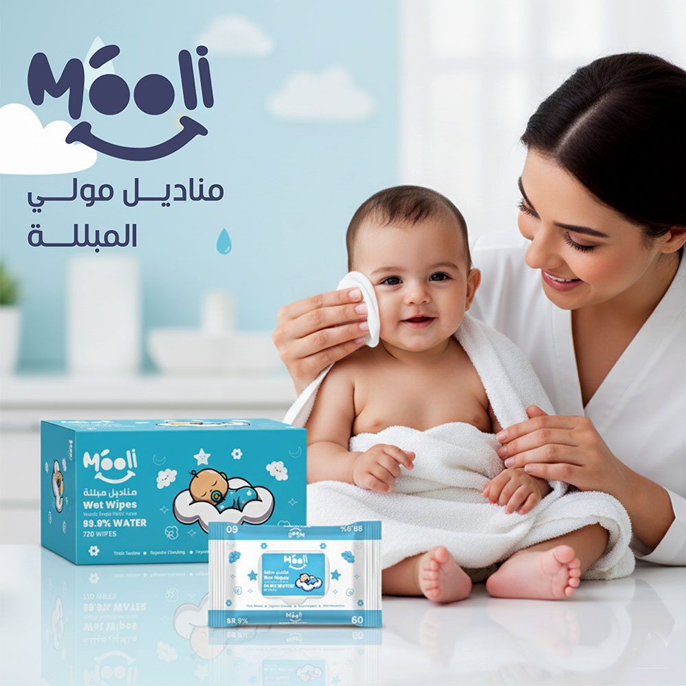 مولي بيبي مناديل مبللة بلا رائحة – عضوية امنة لجميع انواع البشرة-Mooli