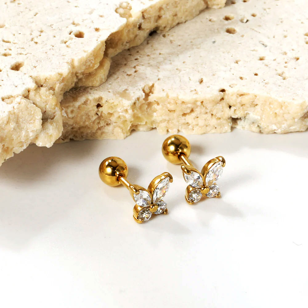 Ason Kexta Stylish And Cute Gold Coloured Screwback Butterfly Earrings