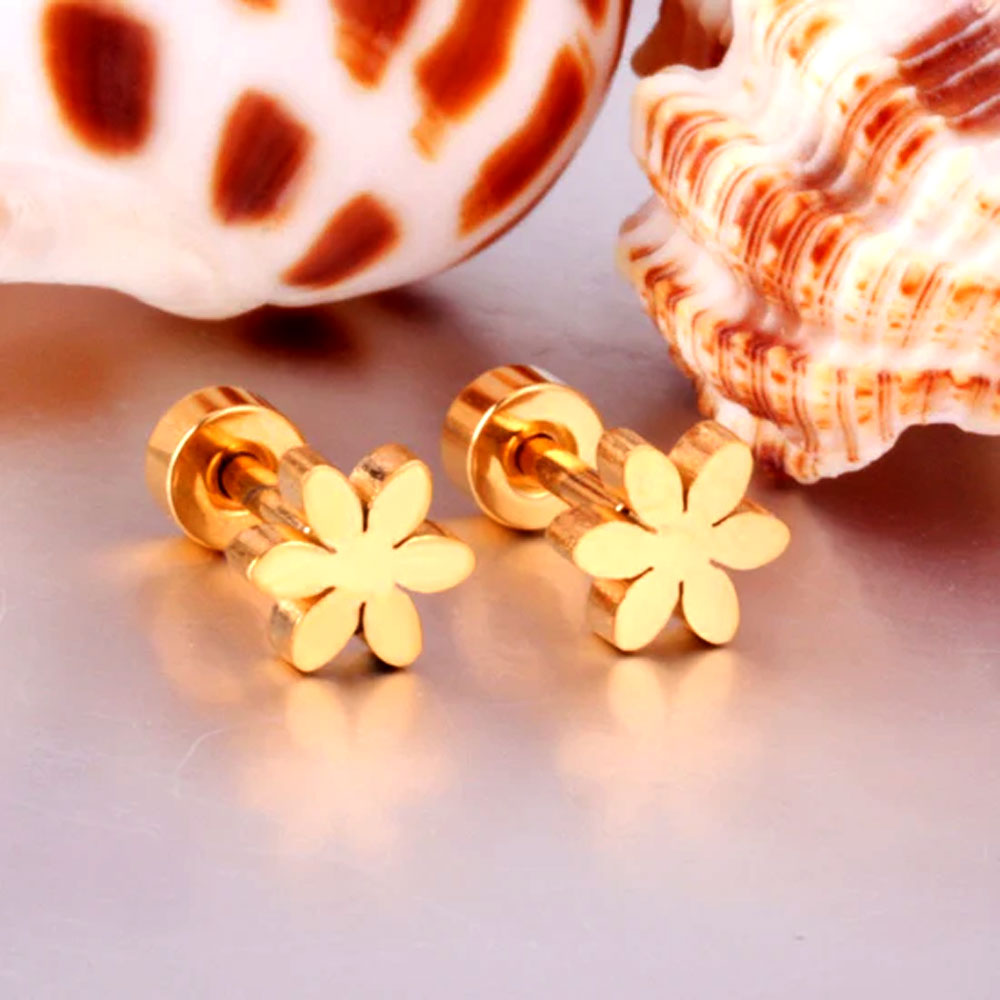 The Ason Kexta Trendy Style Golden Screw Flower Earrings Are a Fashionable and Secure Accessory That Combines Modern Style With a Touch of Nature. These Earrings Feature a Charming Flower Design, Plated With a Radiant Gold Finish That Gives Them a Contemporary and Chic Look. The Key Feature of These Earrings is the Secure Screw-back Closure, Which Provides Peace of Mind by Preventing Accidental Loss and Ensuring a Snug, Comfortable Fit.