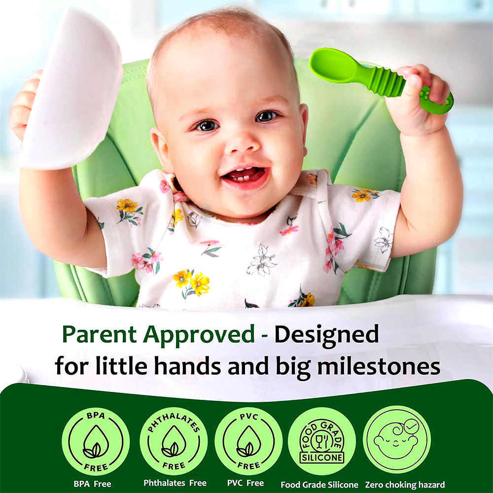 - Vibrant color: comes in a bright green color (and often other colors) to stimulate the baby’s interest and make mealtimes engaging.