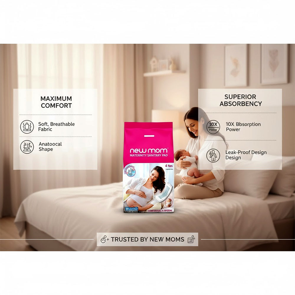 The “New mom maternity sanitary pad” is a specialized, disposable pad designed to manage the heavy bleeding (lochia) and discharge experienced by mothers immediately following childbirth (postpartum period). The “4+1” typically refers to a pack of 4 sanitary pads plus 1 additional item, often a pad fixator/holder or an extra pad, ensuring optimal security and hygiene during the initial heavy flow days.