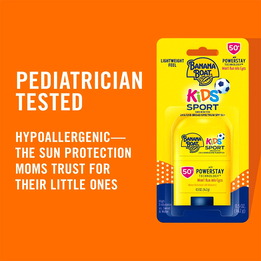 When Your Kids Are Active Outdoors, They Need Powerful Sun Protection That’s Mild and Gentle Enough for Their Sensitive Skin. Available in the Convenience of a Stick, Banana Boat Kids Sport Sunscreen With Powerstay Technology Has a Mild Formula That Won’t Irritate Skin and Strong Sun Protection That Stays on So You Can Play on. It’s the Clinically Proven Uva/uvb Protection That Families Trust, With a Lightweight, Quick-absorbing Formula That Won’t Run Into Eyes. Free From Oxybenzone and Octinoxate, This Banana Boat Sunscreen Stick is Water Resistant Up to 80 Minutes.