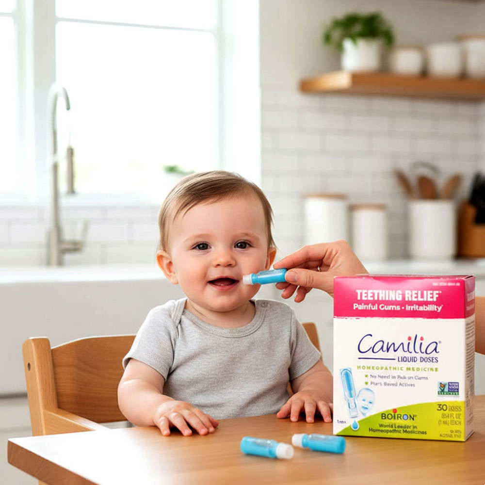 Camilia Teething Relief Liquid Drops (2-pack) Offer Daytime and Nighttime Relief of Painful or Swollen Gums and Irritability in Babies Due to Teething. Includes 30 Pre-measured Doses a Plant-based Medicine for Teething Pain Relief, Camilia Teething Drops Temporarily Relieve Symptoms of Teething, Including Painful Gums and Irritability, as Well as Minor Digestive Disorders Sometimes Associated With Teething Natural Active Ingredients Include Chamomilla 9c Hpus (Helps Relieve Teething Pain Accompanied by Irritability), Phytolacca Decandra 5c Hpus (Helps Relieve Painful Gums) and Rheum 5c Hpus (Helps Relieve Minor Digestive Disorders Associated With Teething). Camilia Has No Known Interaction With Other Medications, It is Not Contraindicated With Pre-existing Conditions, and There is No Risk of Overdose or Numbing Your Baby’s Gag Reflex. The Sterile, Single-use Liquid Doses Are Preservative-free, Belladonna-free, and Help to Prevent Contamination After Opening Foil Pouch. Camilia Teething Drops Do Not Contain Benzocaine, Alcohol, Flavors, Dyes, Lactose, Sugar or Artificial Sweeteners Children 1 Month of Age and Older: Give One Dose at the Onset of Symptoms. Wait 15 Minutes, Then Repeat if Needed for Up to a Total of 9 Doses Per Day.; Store Unused Vials in the Foil Pouch at a Temperature That Does Not Exceed 77°f (25°c); Camilia is Recommended for Babies 1 Month and Up and Works Best When Taken at the First Sign of Teething.