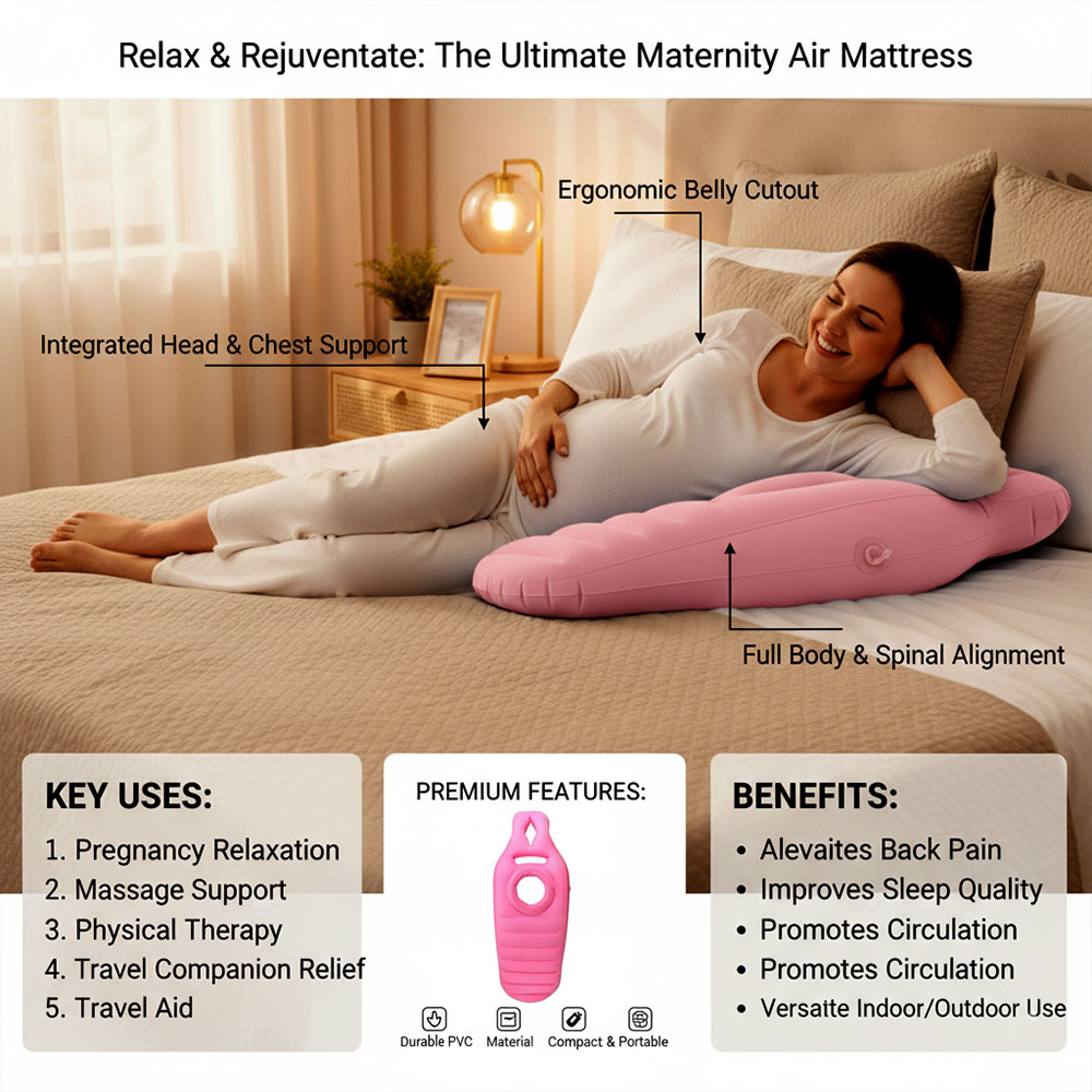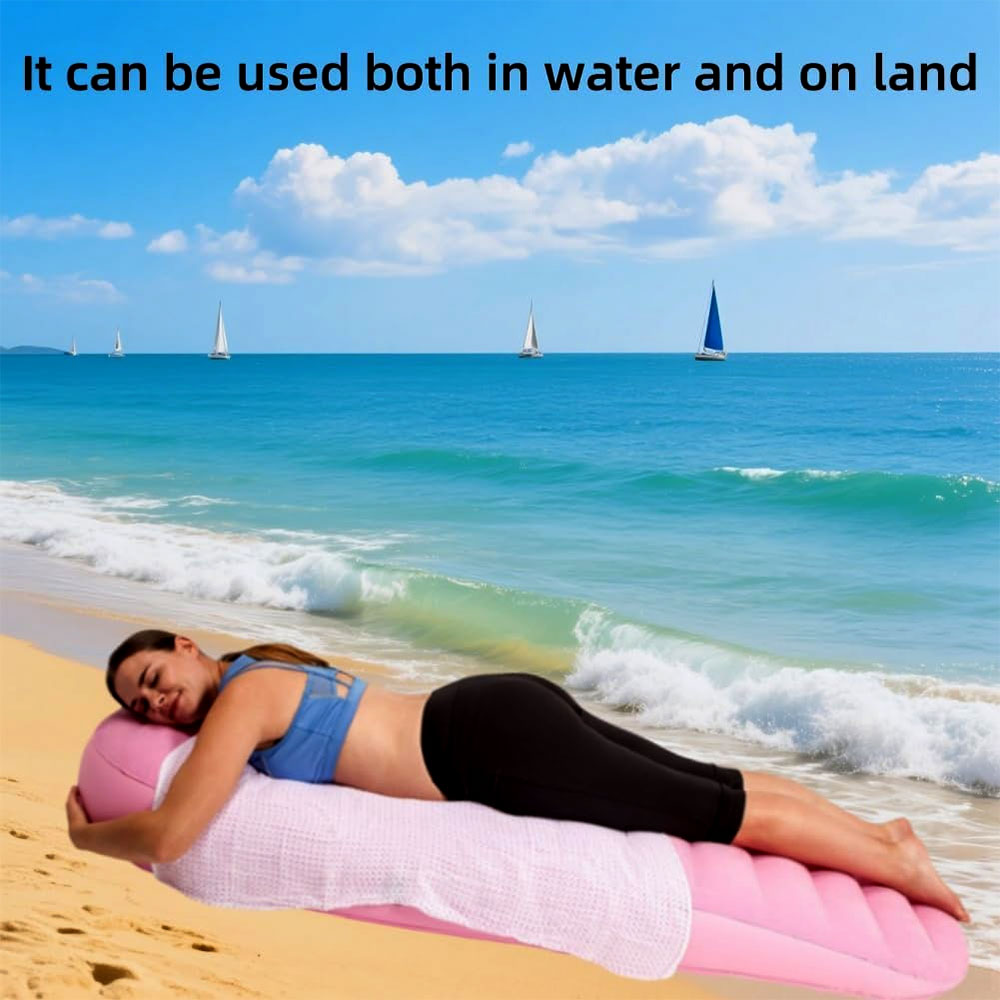 - Inflatable and portable: being inflatable, it allows for adjustable firmness and easy deflation, making it convenient for storage, travel, and adjusting the level of support needed.