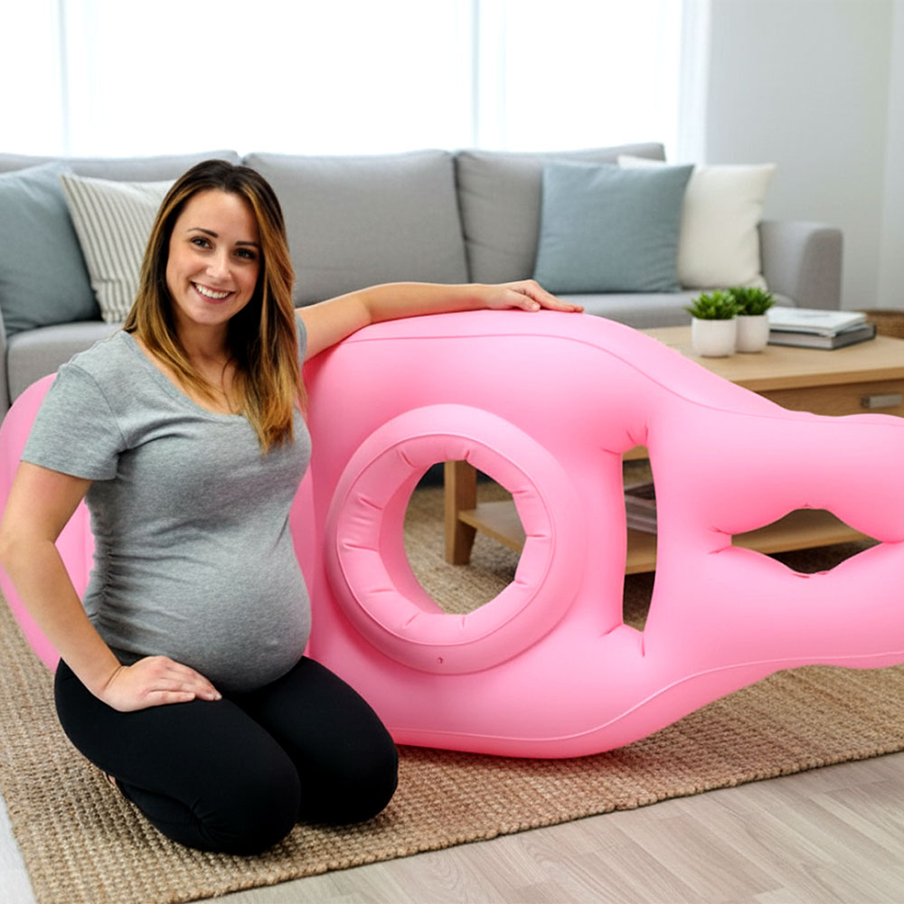 A “Boost inflatable pregnancy pillow – Pink ” is a maternity body pillow designed to offer comfortable support, often by allowing pregnant individuals to safely lie on their stomach. Its key feature is the inflatable design, which typically includes a hole or space for the growing baby bump.