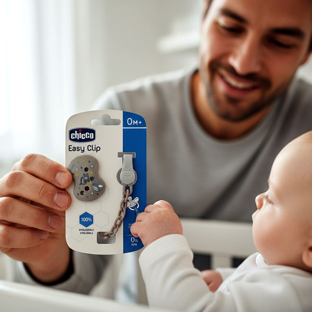 The Chicco Easy Clip Chain Soother-clipper is a Practical and Essential Accessory Designed to Keep a Baby’s Pacifier Clean, Secure, and Always Within Reach. The Clip Easily and Safely Attaches the Soother to a Baby’s Clothes, Preventing It From Falling to the Ground and Getting Lost or Dirty. It Features a Soft, Flexible Part That Can Connect to Pacifiers With or Without a Ring, Making It a Versatile Choice. The Clip Itself is Secure Yet Gentle on Clothing, and the Entire Product is Fully Sterilizable for Optimum Hygiene. Available in Various Colors Like Pink, Blue, and Grey, It’s a Stylish and Functional Solution for Parents on the Go.