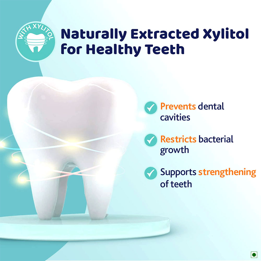 - With xylitol chicco toothpaste has xylitol that helps in preventing dental cavities. Xylitol is unfrementable which prevents the cavity causing bacteria to feed on the enamel there by restricting bacterial growth.
