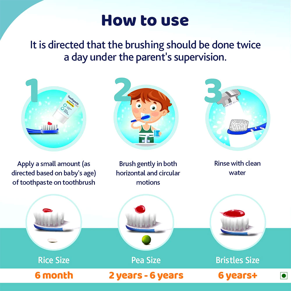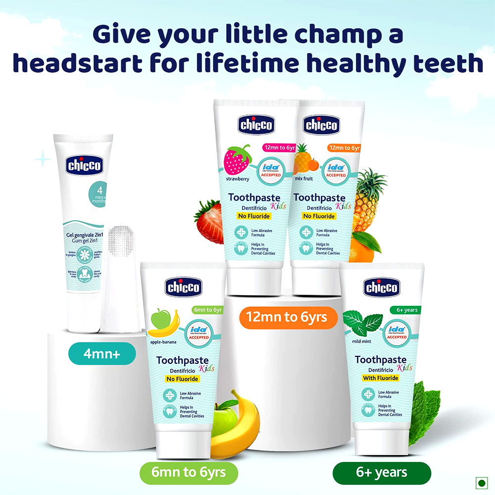 - Low abrasive formula chicco toothpaste have 75% lesser abrasive formual to protect kids teeth enamel when compared to max allowed limit of abrasion.