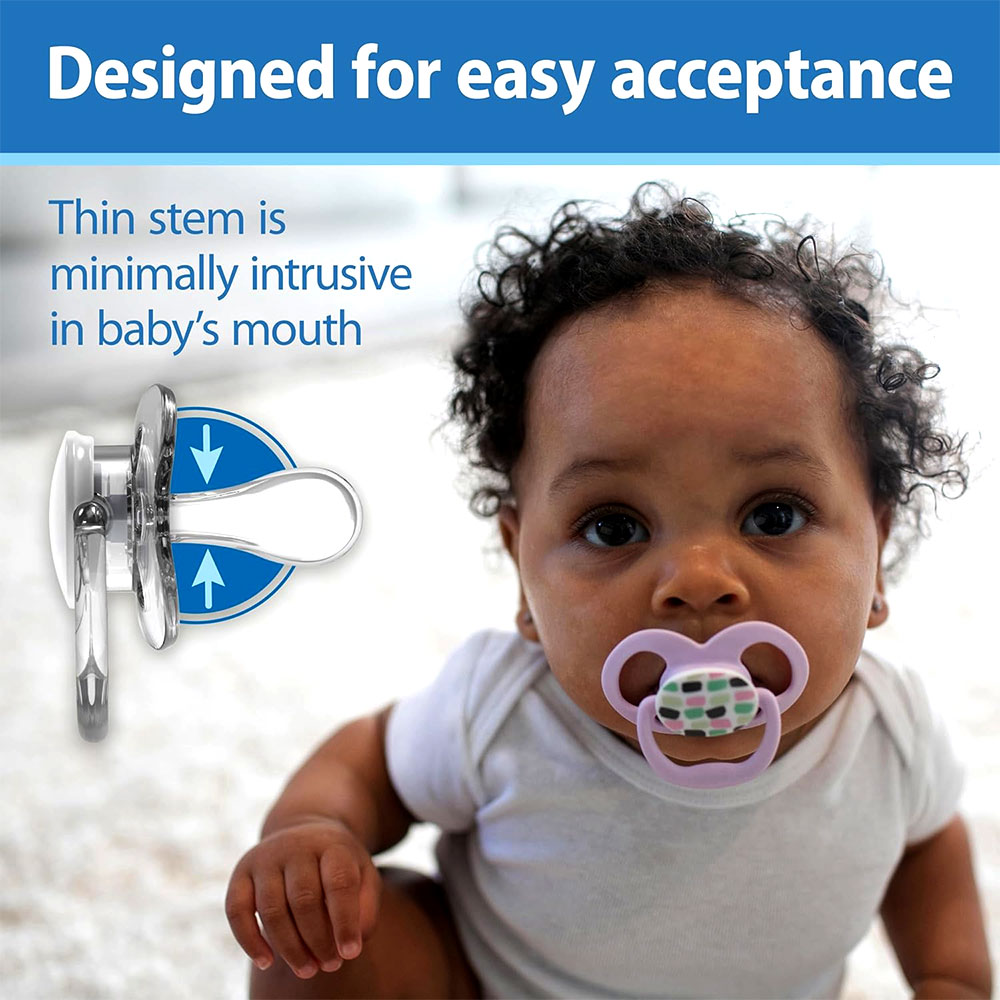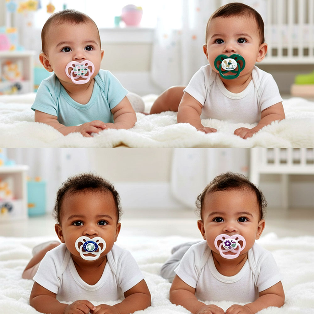 - Fully Symmetrical Design: Features a Completely Symmetrical and Reversible Silicone Bulb, Allowing the Pacifier to Be Placed in the Baby’s Mouth in Any Direction for High Acceptance.