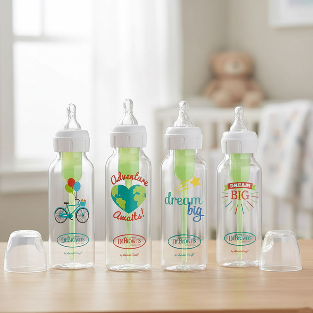 Your options have never been better with dr. Brown’s natural flow® anti-colic options+™ narrow baby bottle. The anti-colic internal vent system is clinically proven to reduce colic. Dr. Brown’s® bottles provide a more comfortable feeding experience for baby by decreasing spit-up, burping and gas. This vacuum-free feeding is closest to breastfeeding and dr. Brown’s® silicone nipples provide a consistent flow so baby can feed at their own pace. The breast-like nipple shape encourages a proper latch for a more natural bottle feeding experience and eases the transition from breast to bottle and back again. Dr. Brown’s vent system is proven to help preserve bottle milk nutrients and aids in digestion for a better night’s sleep. The silicone nipple, together with the internal vent system, offer a reliable and trusted bottle feeding experience that makes dr. Brown’s the #1 pediatrician recommended baby bottle in the u.S.* made to grow with baby, our bottle is designed to nourish through all of baby’s feeding stages and is recyclable. Safe for use in dishwasher (top rack only), electric and microwave sterilizers or boiling water.