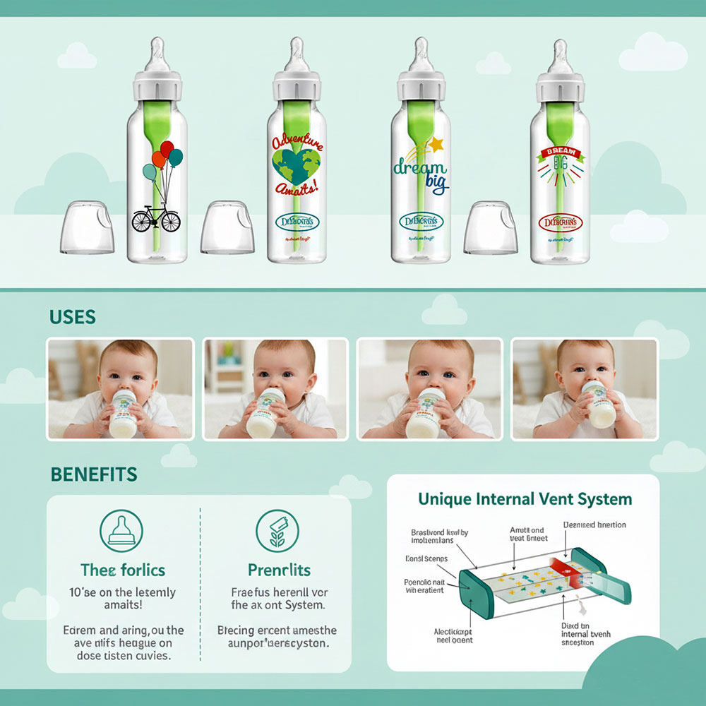 • Anti-colic baby bottle. Anti-colic internal vent system is clinically proven to reduce colic. Decreases spit-up, burping and gas.