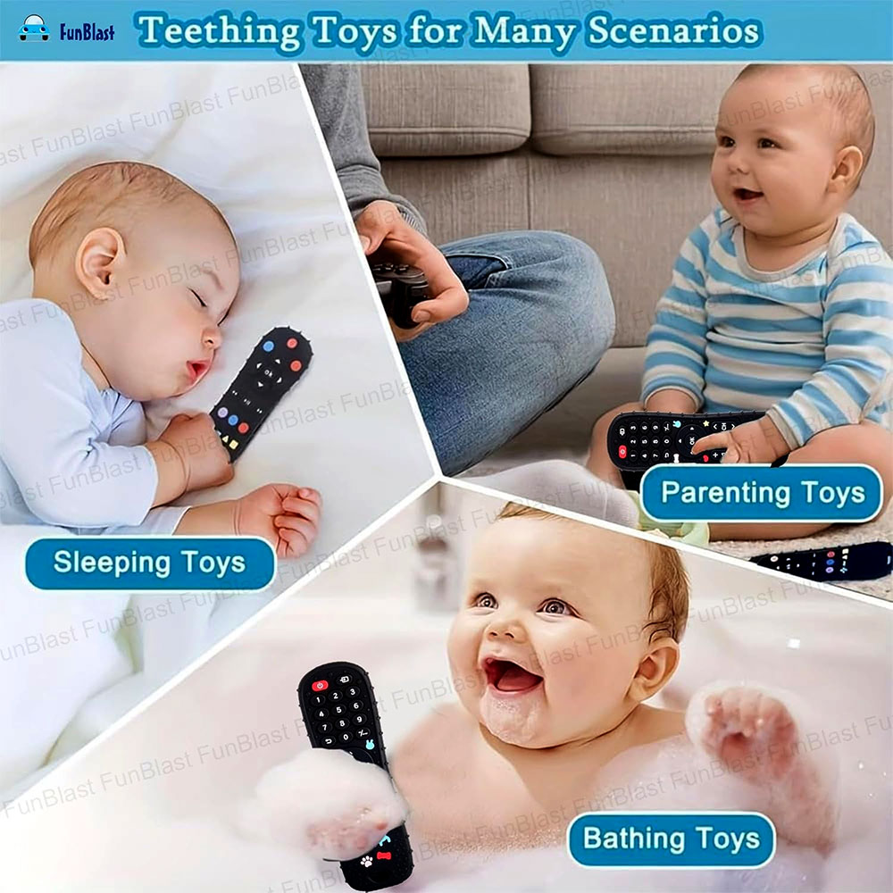 The funblast silicone remote teether is a clever, high-grade teething toy designed to soothe a baby’s gums while diverting their attention from real remote controls. Its realistic shape and safe material make it a practical tool for the teething phase, typically suitable for 3 months and older.
