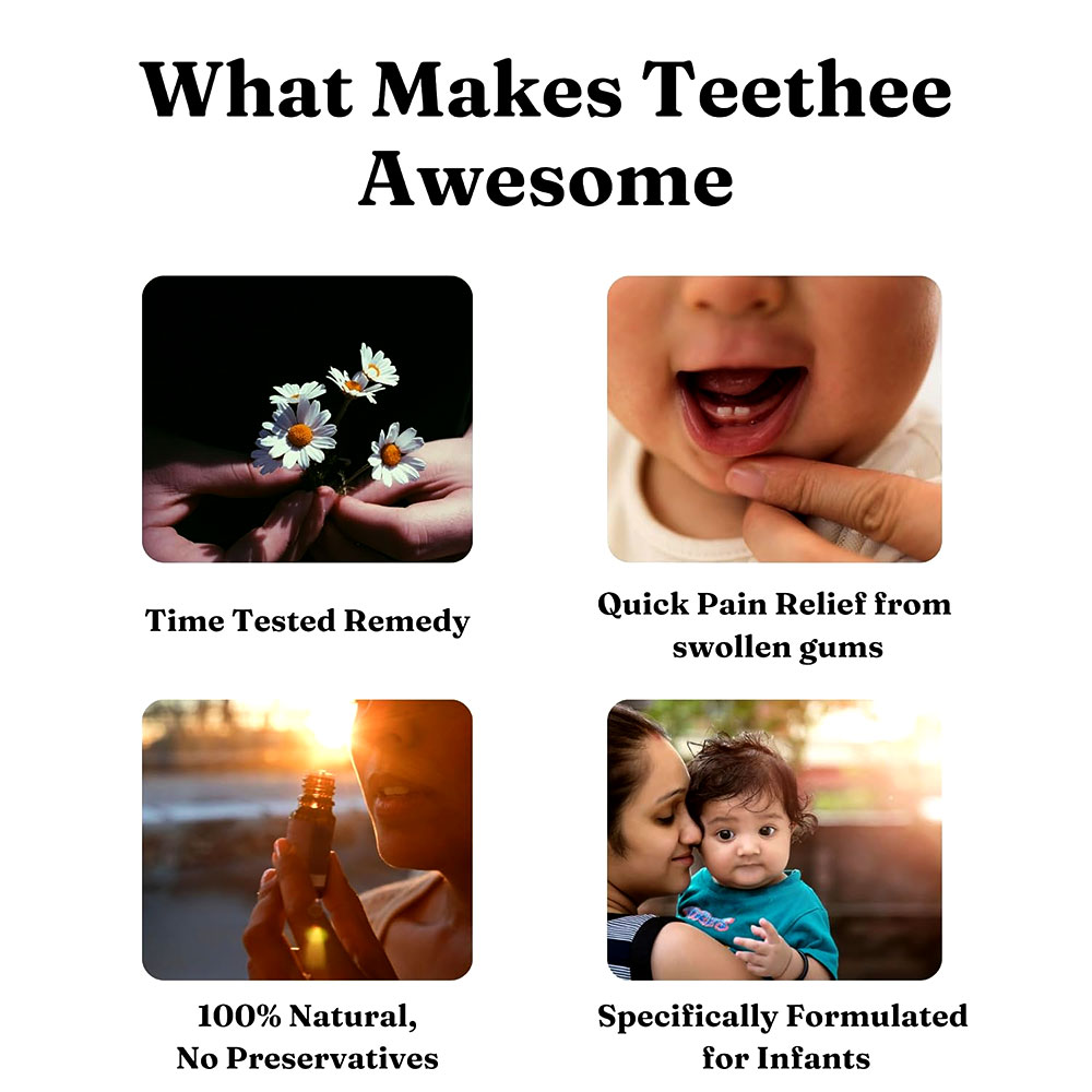 - Topical roll-on application: features a convenient 10ml roll-on bottle with a steel applicator for mess-free and targeted application on the baby’s jawline or under the chin (not directly on the gums).