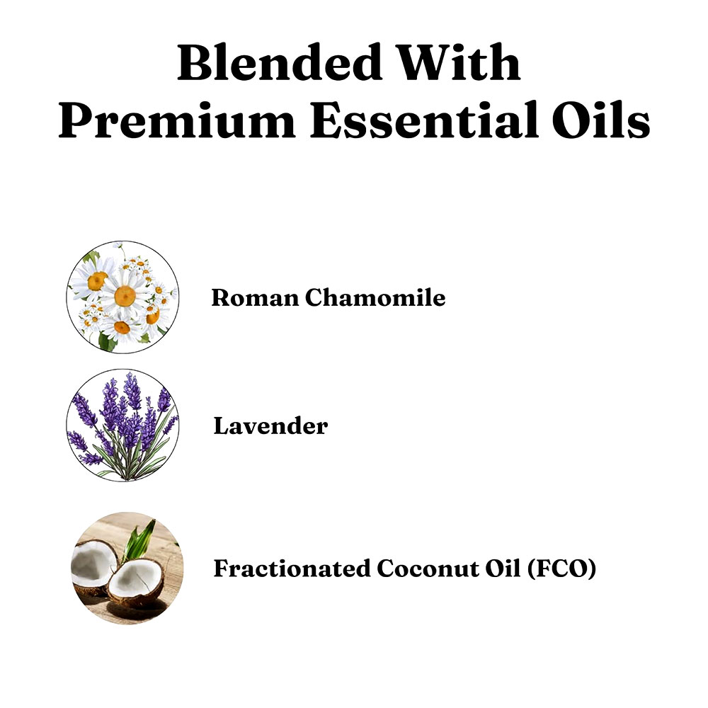 - Natural essential oil blend: formulated with 100% natural, therapeutic-grade essential oils, primarily roman chamomile and lavender, known for their calming and soothing properties.