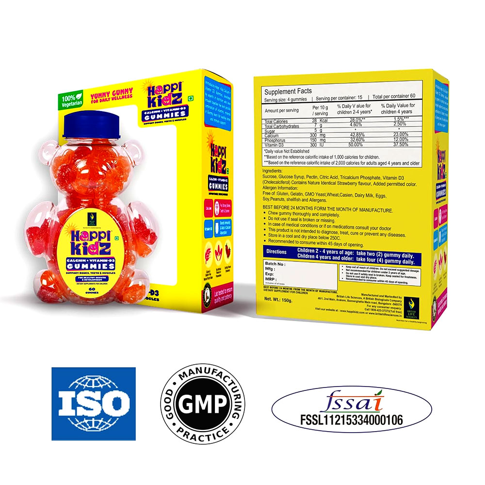 HappiKidz Calcium + Vitamin D3 Gummies – 60 Gummies