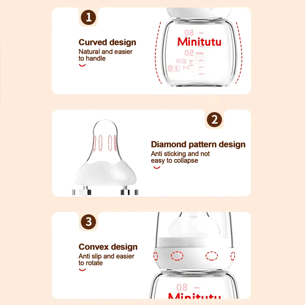Minitutu Newborn Baby Glass Feeding Bottle – 0m+