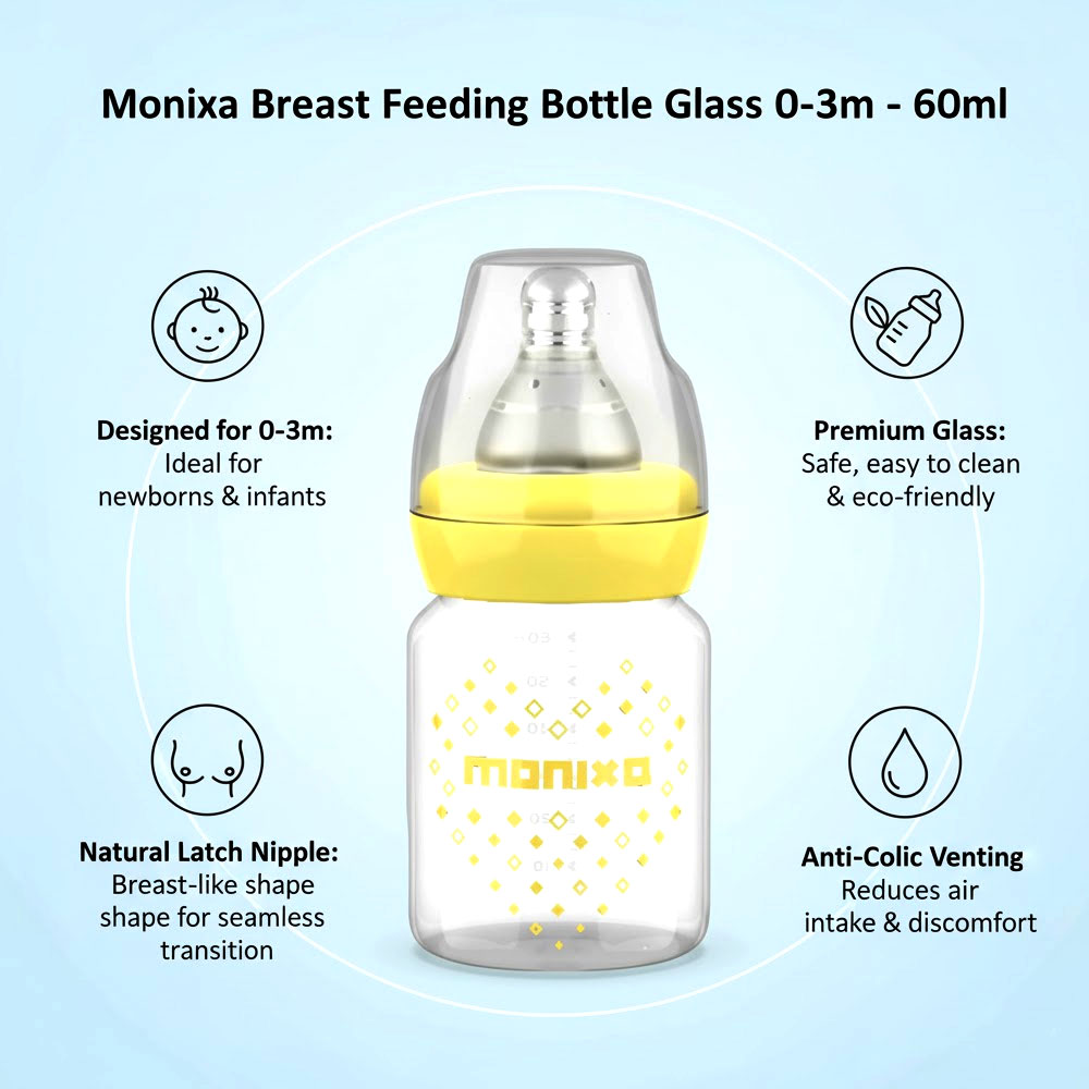 Monixa Breast Feeding Bottle Glass 0-3m – 60ml