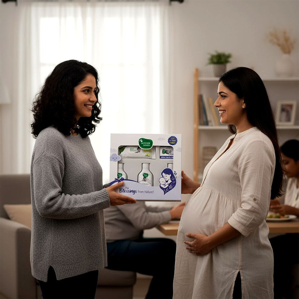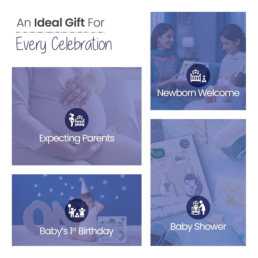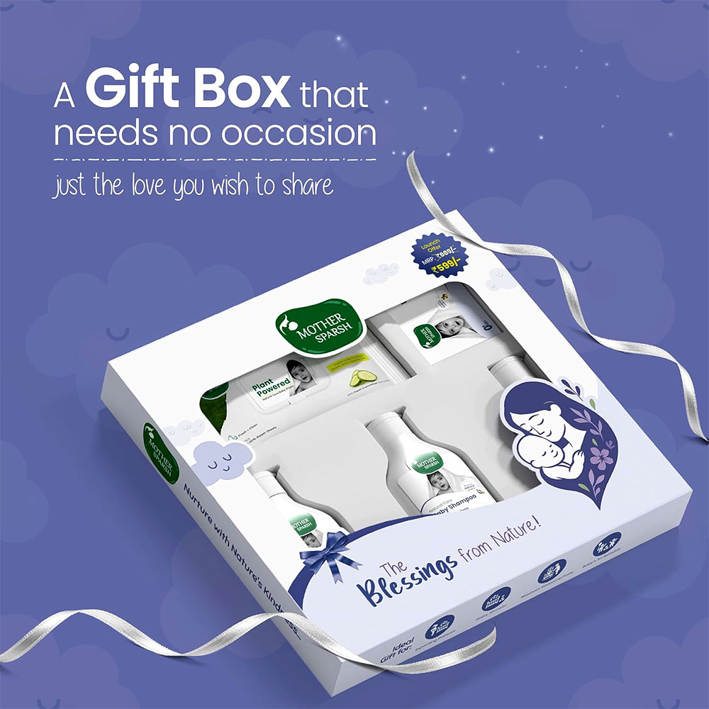 Introducing the “Blessings from Nature Box” by Mother Sparsh, which is more than a baby gift pack; it’s a heartfelt embrace for your baby’s delicate skin. This beautifully crafted box features 5 baby care essentials, all made with the finest ingredients sourced straight from nature. Each baby gift item in the box is thoughtfully formulated to comfort, cleanse and nourish your bundle of joy, providing gentle care from first bath to bedtime snuggles. Free from harsh chemicals, our toxin-free promise ensures every touch is mild, safe and soothing, which is perfect for every skin type. This beautiful gift-ready box makes gifting magical, whether baby shower gifts for mom to be, gift for newborn baby girl or boy, or marking those precious first milestones. Let nature’s goodness become part of your family’s cherished moments, offering moms and dads the utmost confidence with every use.
