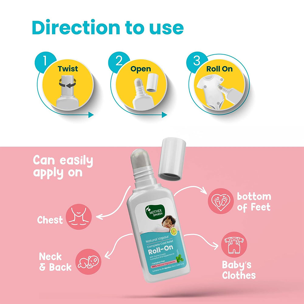 - Camphor-free all-natural: mother sparsh natural vapour complete cold relief roll-on is formulated to provide instant relief from chest & nasal congestion. A natural blend of soothing oils works perfectly for babies over 3+ months.