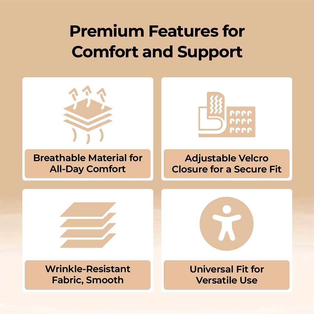 - Universal, non-creasing design: features an easy-to-use velcro closure and a universal sizing option designed to fit most users comfortably. The material is specifically engineered not to fold, buckle, or develop wrinkles when worn.