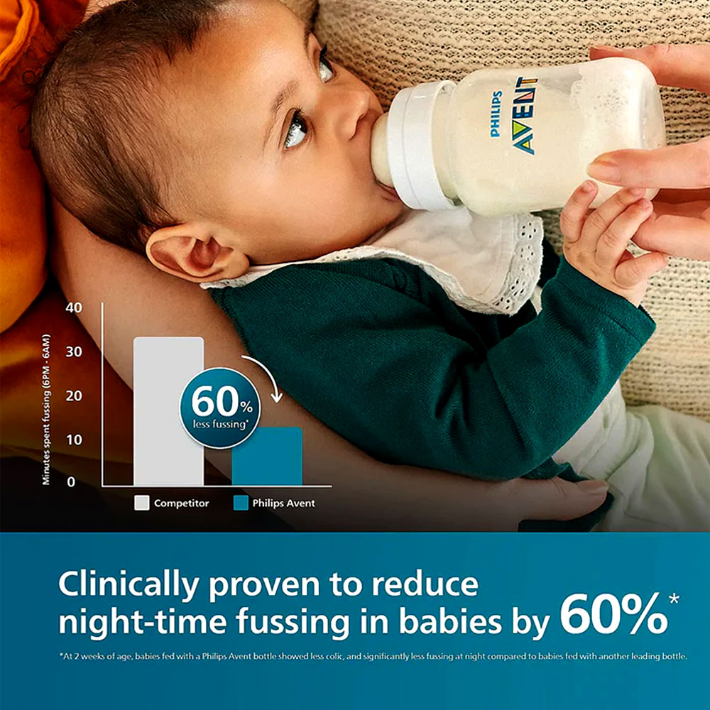- Clinically proven to reduce colic: the anti-colic valve minimizes colic and gas, with clinical studies showing a 60% reduction in fussing at night compared to other leading bottles.
