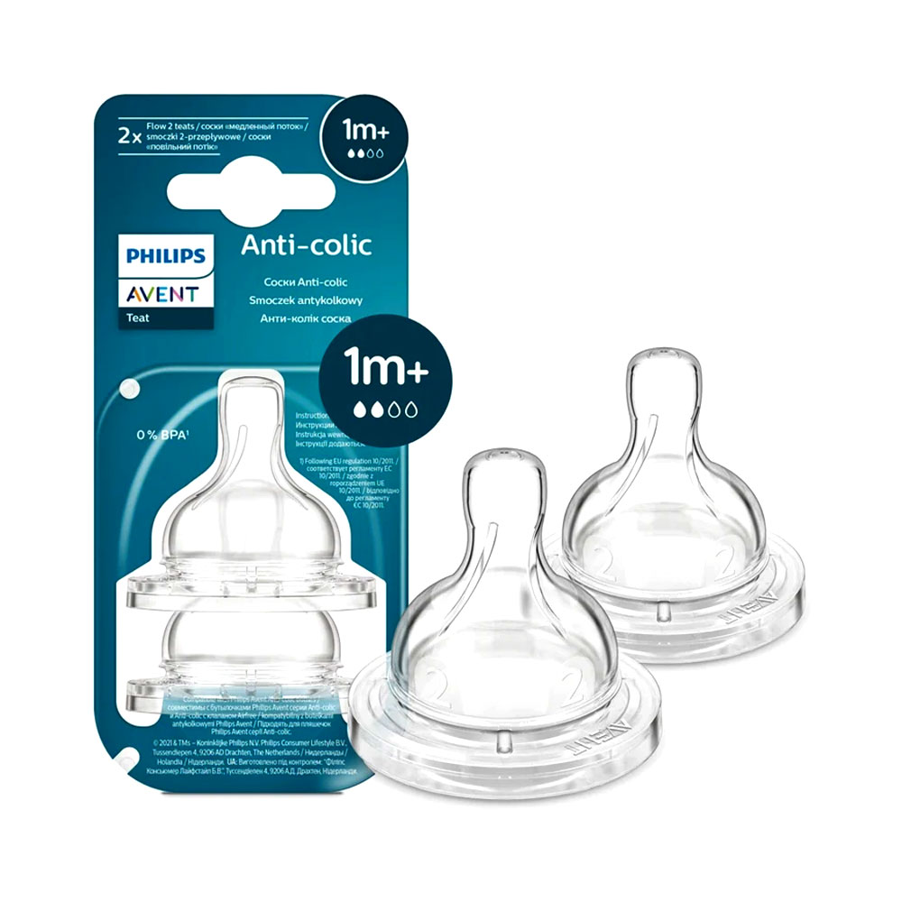 Philips Avent – Anti-Colic Nipple Teats Airflex 1m+ | Flow 2 | 2 Pack