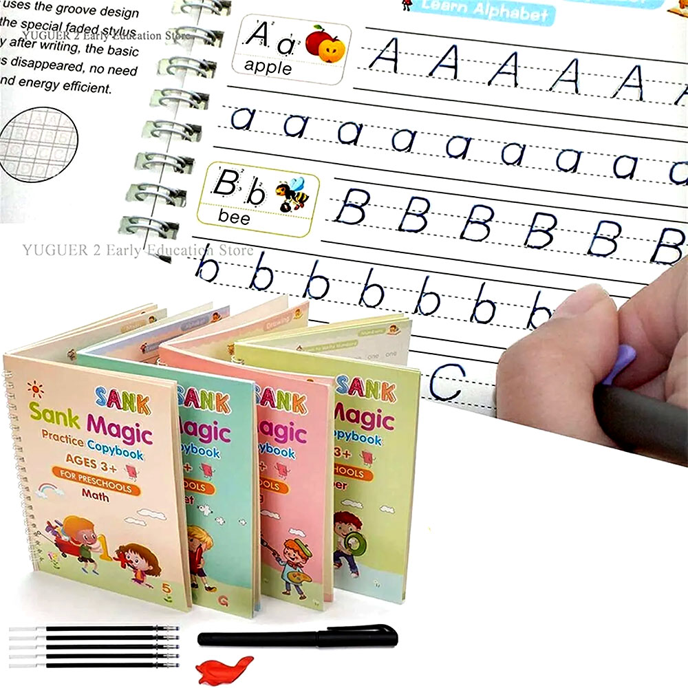 The Sank Magic Practice Copybook is a Revolutionary Learning Tool Designed to Help Children Aged 3 and Up Develop Their Handwriting Skills. This Four-book Set Includes Dedicated Practice Books for Letters, Numbers, Drawing, and Basic Math. The “Magic” Element Comes From the Unique Ink in the Included Pens, Which Disappears Within Minutes of Writing. This Allows the Books to Be Used Endlessly, Providing Unlimited Opportunities for Practice and Correction. Each Page Features Grooved Lines That Act as a Guide, Helping Children’s Hands to Follow the Correct Stroke Patterns and Build Muscle Memory. This Fun and Interactive Method Makes Learning to Write an Enjoyable, Stress-free Experience.