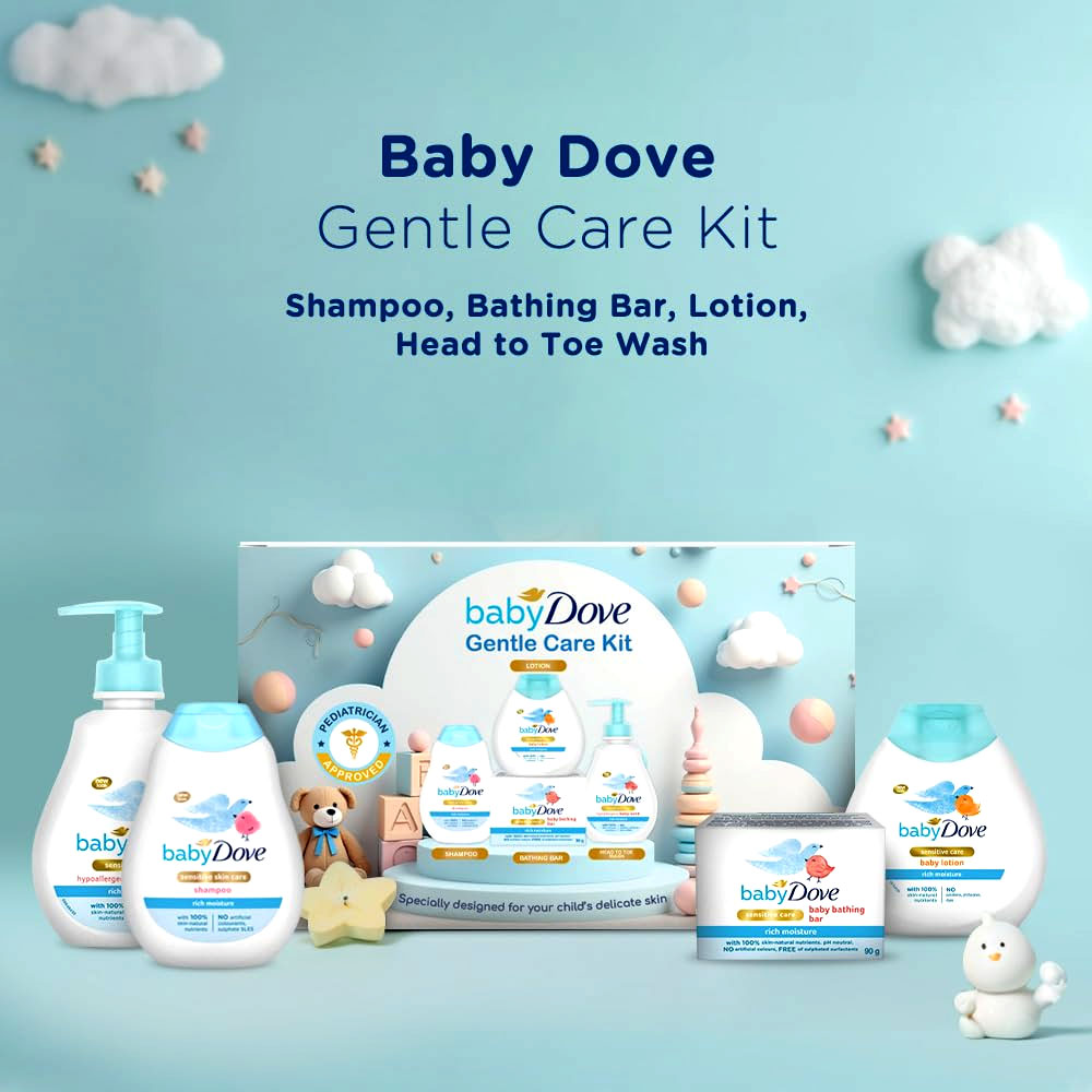 Dove Rich The Ultimate Baby Moisture Kit – Hypoallergenic Wash, Shampoo, Lotion, & Soap Bar