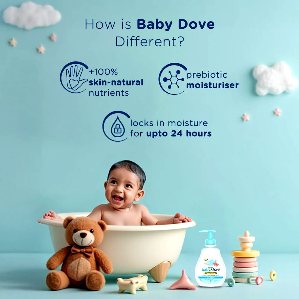 Baby’s delicate skin requires extra care and attention as it is 30% thinner than adult skin and has a weaker skin barrier, making it more vulnerable to damage and can cause the skin to lose moisture up to five times faster than adult skin.Baby skin is delicate and can lose essential nutrients 5 times faster than adults, during bath time. To keep your baby’s skin soft and nourished, we created baby dove rich moisture baby lotion 200ml. Soothing dry skin from the very first use, this caring baby body moisturizer replenishes skin-essential nutrients to help baby skin retain its natural moisture. Caring for a baby’s delicate skin requires attention to all areas, including the scalp, which can be one of the most sensitive. That’s why we believe the best baby shampoos should not only cleanse but also moisturize.