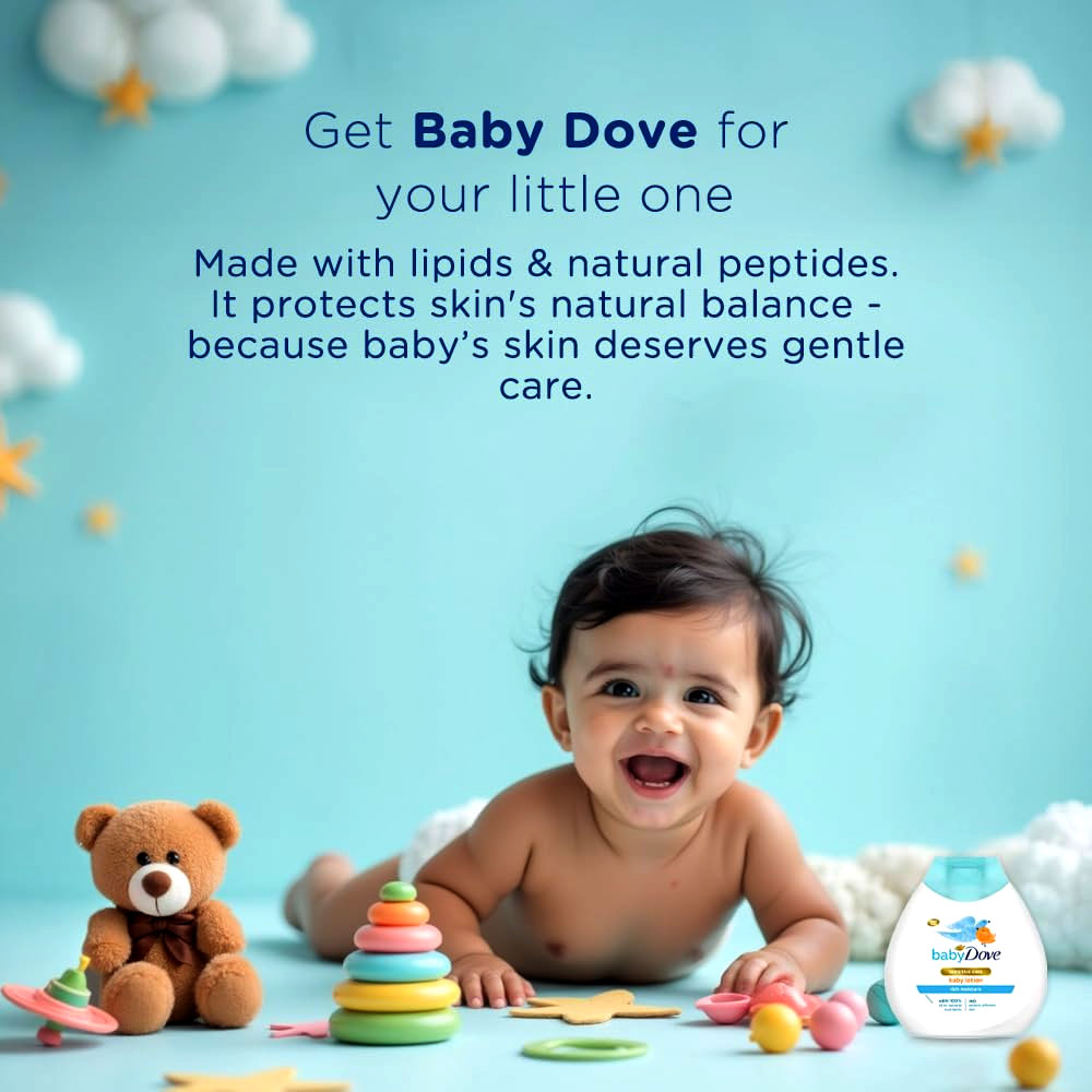 - This baby lotion for winter has 100% skin-natural nutrients*. The nutrients in baby dove lotion are identical to those naturally found in skin. It gently moisturises babies’ soft skin texture. Dove baby lotion protects babies from dry and itchy skin.